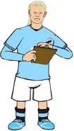 Haaland is competitive and is friends with his teammates, but stands up for his father Alfie Inge Haaland after getting injured by Roy Meane, who hates Haaland and is violent. He also teases tons of players by saying 'Oh, mer, mer, mer, mer, mer, mer'.