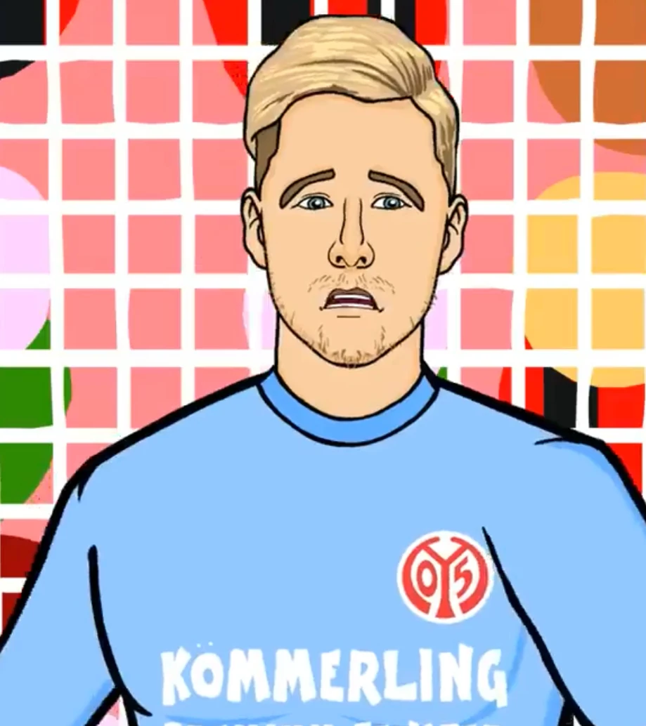 Müller has light skin with blonde hair (dirty blonde in real life) with the undercut hairstyle combed to the left, light brown eyebrows, and blue eyes. He is seen wearing the light blue goalkeeper outfit.