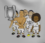 The other names for the team, Real Modrid, Real Mbadrid, Real Benzemadrid, and Real Hazardid are references to Lucroat Modrić, Kylian Mfloppé, Mercedes Benzema, and Eden Hazardous respectively.